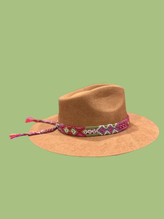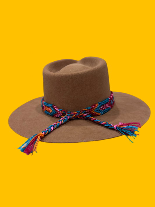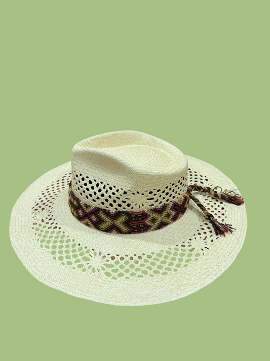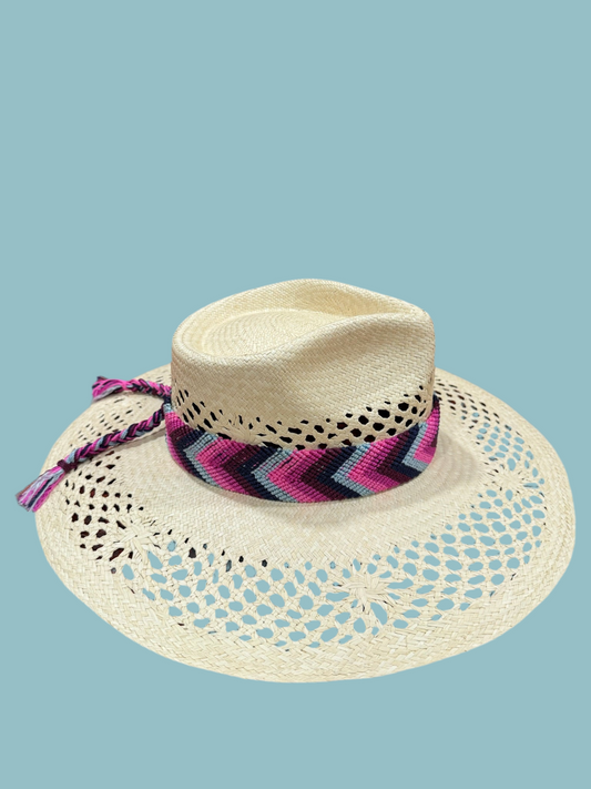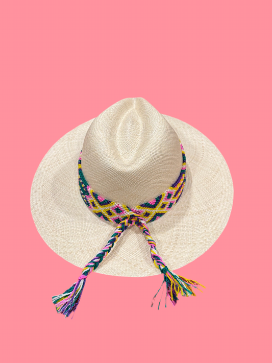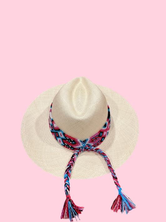 1:1 Panama Pink Blue & Yellow handwoven hat & band